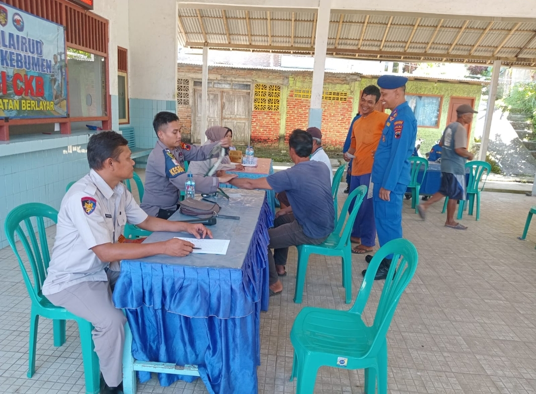 Satpolairud Polres Kebumen menggelar kegiatan Cek Kesehatan Berlayar (CKB) di Tempat Pelelangan Ikan (TPI) Pasir, Kecamatan Ayah, pada Selasa (29/4/2025).
