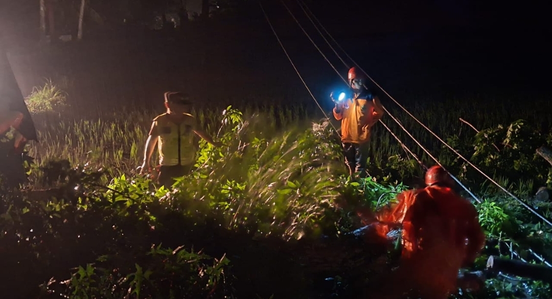 Laporan pertama datang dari warga bernama Oki Setiawan, 38 tahun, karyawan swasta asal Desa Klapasawit. Ia menghubungi petugas sekitar pukul 23.15 WIB setelah melihat tiang listrik ambruk tertimpa batang pohon di dekat rumahnya.
