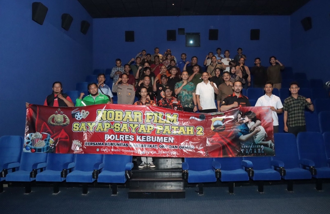 KEBUMEN, Times7.id,– Dalam rangka mempererat silaturahmi dengan elemen masyarakat, Polres Kebumen menggelar kegiatan nonton bareng (nobar) film “Sayap-Sayap Patah 2” yang berlangsung di Sam’S Studio Gombong, Jumat (16/5/2025). Kegiatan ini melibatkan berbagai kalangan, mulai dari komunitas masyarakat, mahasiswa, hingga perwakilan organisasi kemasyarakatan (Ormas) di wilayah Kebumen.