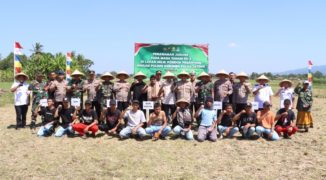 KEBUMEN, Times7.id,— Polres Kebumen kembali menanam jagung, kali ini di atas lahan seluas 3.500 meter persegi milik Pondok Pesantren Al Barokah Desa Somagede, Kecamatan Sempor, yang berlokasi di wilayah Desa Sidayu, Kecamatan Gombong, Rabu 6 Agustus 2025.